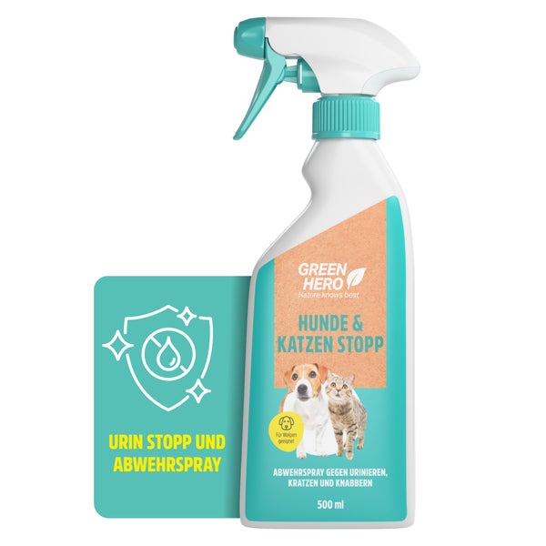 GreenHero Katzen & Hundestopp ist ein hochwirksames Repellent auf Basis natürlicher Zitroneneukalyptus-Öle. Beim Versprühen legt sich ein für Hunde- und Katzenschnauzen äußerst unangenehmer Duftfilm über die behandelten Oberflächen. Die Tiere meiden den Bereich, ohne dass sie verletzt oder vergiftet werden – eine saubere Lösung für Mensch, Tier und Umwelt.