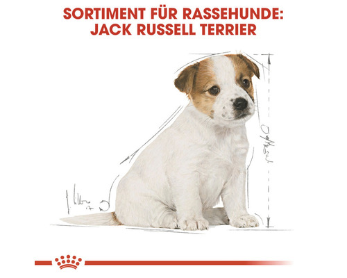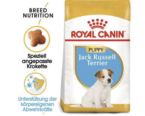 Der Jack Russell Terrier zählt zu den aktivsten und beweglichsten kleinen Hunderassen weltweit, er ist aufmerksam, treu und unabhängig. Lassen Sie sich nicht von seiner geringen Größe täuschen, der kleine Terrier ist schon als Welpe immer in Bewegung. ROYAL CANIN Jack Russell Terrier trägt aufgrund seines angepassten Kalzium- und Phosphorgehalts dazu bei, die Knochen und Gelenke Ihres Welpen während des Wachstums zu unterstützen. Zudem helfen die ausgewählten Nährstoffe dabei, das ideale Körpergewicht Ihres Welpen zu fördern und zu erhalten. Die maßgeschneiderten Kroketten der Trockennahrung wurden exklusiv für den Kiefer von Jack Russell Terrier Welpen entwickelt. Die Größe und Form der Kroketten erleichtern Ihrem Welpen das Aufnehmen der Nahrung und regen ihn auch dazu an, vor dem Schlucken gründlich zu kauen.