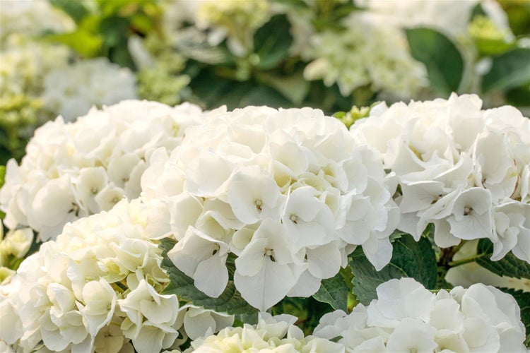 Hydrangea macrophylla 'Bianco', Hortensie, weiß, 40–60 cm
