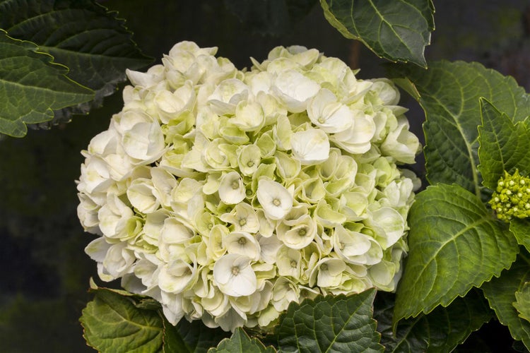 Hydrangea macrophylla 'Everbloom White Wonder', weiß, 30–40 cm