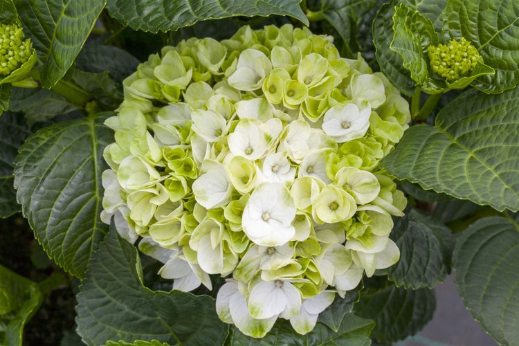 Hydrangea macrophylla 'Hochzeits-Hortensie', weiß, 30–40 cm