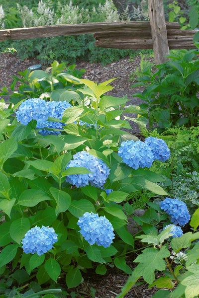 Für eine leuchtend blaue Blütenfarbe bevorzugt die Hortensie einen leicht sauren, humosen und gleichmäßig feuchten Boden. In neutralen bis kalkhaltigen Substraten tendieren die Blüten zu Rosé; spezieller Hortensiendünger mit Aluminium (Alaun) und kalkarmes Gießwasser fördern das typische Blau. Ein halbschattiger bis absonniger Standort, geschützt vor heißer Mittagssonne und austrocknendem Wind, sorgt für lange Blühfreude. Staunässe wird nicht vertragen, eine Mulchschicht hält die Feuchtigkeit im Boden. Der Schnitt erfolgt behutsam direkt nach der Blüte, lediglich verblühte Rispen und erfrorene Triebe werden entfernt, damit die Blütenknospen für das nächste Jahr erhalten bleiben. In rauen Lagen empfiehlt sich ein leichter Winterschutz über den Knospen. Als vielseitiger Gartenstrauch und Blütenlieferant ist Hydrangea macrophylla ‘Nikko Blue’ die ideale Wahl für farbstarke Akzente in Beet, Vorgarten, Kübel und lockerer Blütenhecke.