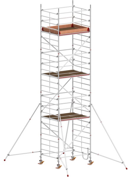 Extrem robuste Ausführung durch geschweißte Rahmenteile Schneller Auf- und Abbau durch Klickverschlüsse an Streben und Diagonalen Rutschsicherer Belag auf Bühnen und manueller Sicherheitshaken für sicheres Auf- und Abbauen Bequemes Ausgleichen von Bodenunebenheiten dank höhenverstellbarer Lenkrollen Optionaler Aufbau mit Höhenversatz Besonders große Arbeitsfläche durch zwei nebeneinander liegende Bühnen Bühnenlänge 1,90 m Rahmenteilbreite 1,50 m Arbeitsfläche 1,90 x 1,30 m Lenkrollen Ø 200 mm Lastklasse/Gerüstgruppe 2: 150 kg/m²
