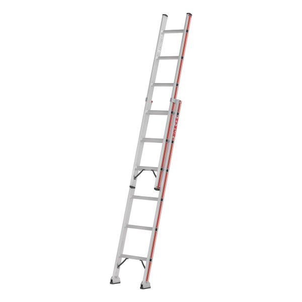 Hohe Robustheit durch verwindungsstabile, verbördelte Holm-Stufen-Verbindung Erhöhte Rutschfestigkeit der Sprossen dank stärker profiliertem Strangpressprofil Vereinfachtes Ein- und Ausfahren der Leiter durch Führungsbeschläge aus Stahl mit Kunststoffgleitern Komfortables Ausfahren der Leiter mittels Wandlaufrollen (für Sprossen 2x14, 2x16 und 2x18) Ausführung 2x6 Sprossen ohne Traverse Leiterinnenbreite 300 mm (Oberteil) Nach EN 131 Hinweis Zur TRBS-konformen Verwendung als Arbeitsplatz ist bei Sprossenleitern entsprechendes Zubehör wie Einhängetritte (Universal-Keitertritt klappbar zu verwenden.)