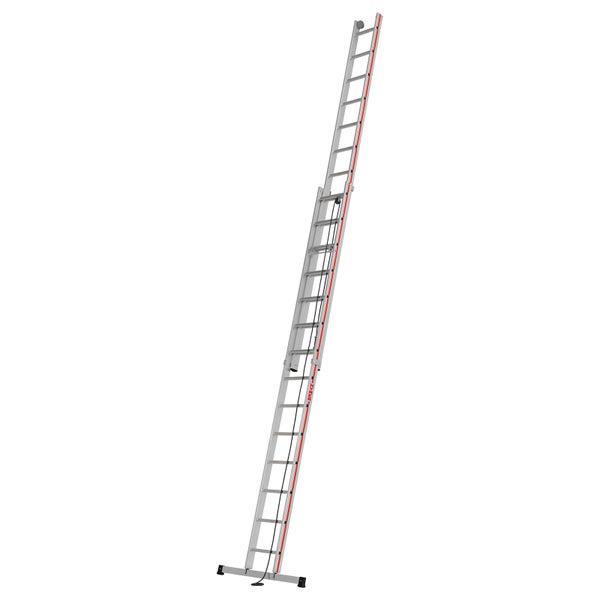 Rutschsichere, geriffelte Sprossen aus Walzprofil Robuste Führungsbeschläge aus Stahl Komfortables Ausfahren der Leiter mittels Wandlaufrollen Langlebiges, reißfestes Seil für eine sichere Höhenverstellung Leiterinnenbreite 300 mm (Oberteil) Hinweis Zur TRBS-konformen Verwendung als Arbeitsplatz ist bei Sprossenleitern entsprechendes Zubehör wie Einhängetritte (Universal-Leitertritt klappbar) zu verwenden