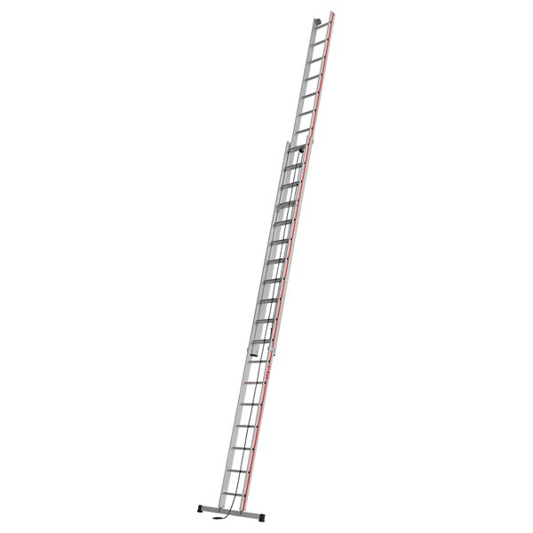 Rutschsichere, geriffelte Sprossen aus Walzprofil Robuste Führungsbeschläge aus Stahl Komfortables Ausfahren der Leiter mittels Wandlaufrollen Langlebiges, reißfestes Seil für eine sichere Höhenverstellung Leiterinnenbreite 300 mm (Oberteil) Hinweis Zur TRBS-konformen Verwendung als Arbeitsplatz ist bei Sprossenleitern entsprechendes Zubehör wie Einhängetritte (Universal-Leitertritt klappbar) zu verwenden