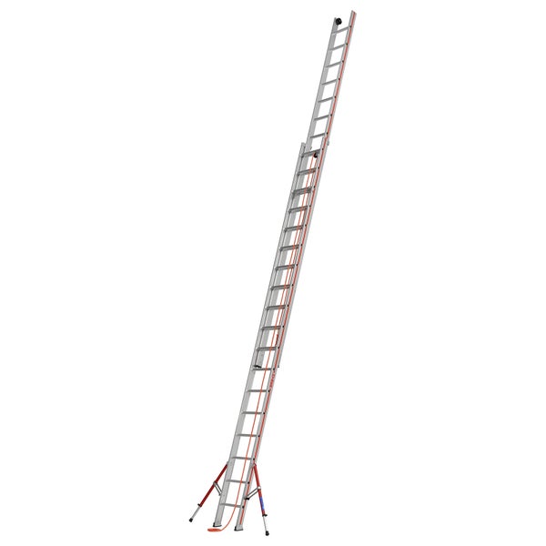 Erhöhte Rutschsicherheit der Sprossen dank stark profiliertem Strangpressprofil Vereinfachtes Ein- und Ausfahren der Leiter durch Führungsbeschläge aus Stahl mit Kunststoffgleitern Komfortables Ausfahren der Leiter mittels Wandlaufrollen Langlebiges, reißfestes Seil für eine sichere Höhenverstellung Sicherer Stand mittels klappbarer, transportoptimierter Teleskopausleger Hohe Standfestigkeit dank Klappfüße mit großer Auflagefläche Leiterinnenbreite 300 mm (Oberteil) Hinweis Zur TRBS-konformen Verwendung als Arbeitsplatz ist bei Sprossenleitern entsprechendes Zubehör wie Einhängetritte (Universal-Keitertritt klappbar zu verwenden.)