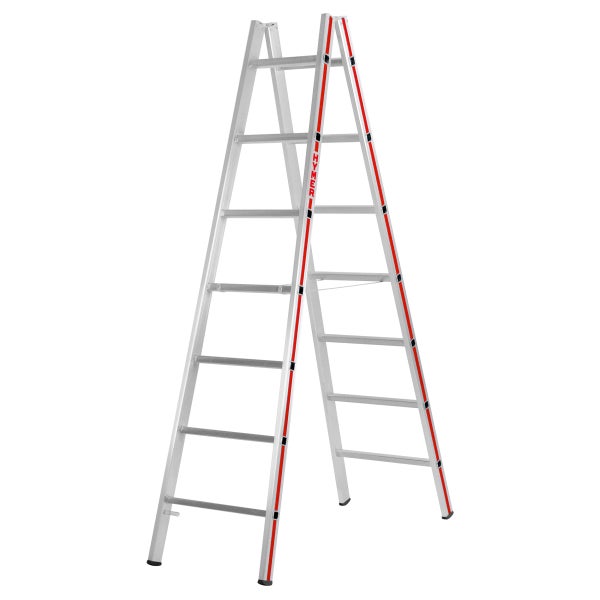 Hymer Sprossenstehleiter mit verschraubten Alumininium Scharnieren 2x7 Sprossen