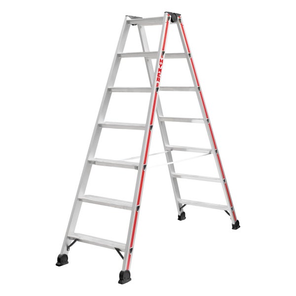 Ergonomisches Arbeiten auf 80 mm Stufentiefe. Vorderkante mit Holm bündig Zuverlässige Spreizsicherung durch hochfesten Perlongurt Kompakte und leichte Ausführung Nach EN 131, TRBS-konform