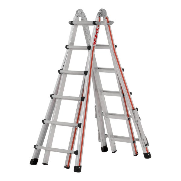 Multifunktionale Verwendung Höhenverstellbar in 280-mm-Schritten Flexible Verwendung in Treppenstellung Einfach zu bedienende Bolzengelenke aus Stahl Mühelos zusammenklappbar ohne vorheriges Lösen des Gelenks Sperrelemente aus hochwertigem Alu-Guss Nach EN 131-4 Hinweis Zur TRBS-konformen Verwendung als Arbeitsplatz ist bei Sprossenleitern entsprechendes Zubehör wie Einhängetritte (Universal-Keitertritt klappbar zu verwenden.)