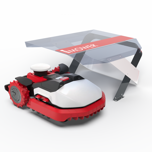 Idea Mower Mähroboter-Garage Mobius XL Custom Kress – Transparent/Weiß/Rot/Schwarz – wasserdichte Schutzabdeckung – 975×710×550 mm – Aluminium-/Kunststoffpaneele