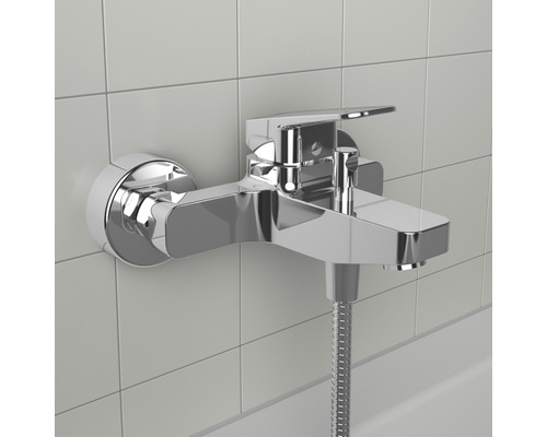 Darum solltest Du zugreifen: Diese Badarmatur ist für die Kalt- und Warmwasserversorgung gemacht und eignet sich bestens für Badewannen. Mit ihrer Hochdruckfähigkeit und Eignung für Durchlauferhitzer sowie Druckspeicher ist sie äußerst flexibel im Gebrauch. Die automatische Umstellung zwischen Wanne und Brause macht die Bedienung kinderleicht. Der Bedienhebel aus Metall und die Geräuschgruppe I sorgen für ein angenehmes Handling und leisen Betrieb. Ausgestattet mit einer Keramikkartusche bietet die Armatur eine langlebige Funktionalität. Die Eigenschaft, sicher gegen Rückfließen zu sein, erhöht die Sicherheit und verhindert ungewollten Wasseraustritt. Der integrierte Temperaturbegrenzer schützt vor zu heißem Wasser. Der elegante Chromfarbton fügt sich nahtlos in moderne Badeinrichtungen ein und die Ausladung von ca. 115 mm sorgt für ausreichend Platz zum bequemen Wassereinlauf.
