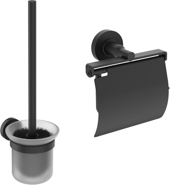 Ideal Standard – IOM Accessoir Bundle, bestehend aus Papierrollenhalter und Bürstengarnitur, Glas herausnehmbar, Verdeckte Befestigung und einfache Montage, Halterung aus Metall, Silk Black