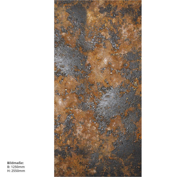 Industrial Rust, 125x255cm, fugenlose Wandpaneele aus Alu-Verbund 3mm, Duschrückwand