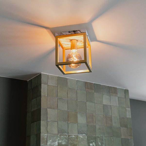 Ein schönes, luftiges Design mit einem starken minimalistischen Look. Entscheidest du dich auch für diesen stilvollen Look? Jeder Raum im Haus wird mit der schönen Optik unserer Cage gefüllt sein! Die offene Gestaltung des Designs eignet sich perfekt für eine unserer dekorativen Glühbirnen. Wähle eine E27-Fassung mit max. 60W. Die Leuchte ist mit einer Marmorhalterung in Gold versehen: eine sehr schöne Kombination in jedem Einrichtungsstil. Die Deckenleuchte hat die Maße 18 cm x 18 cm und eine Tiefe von 20 cm. Entscheide dich für Stil mit unserer Cage Deckenleuchte!