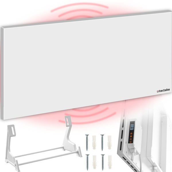 Mach es Dir wohlig warm an kalten Tagen mit der modernen Infrarotheizung mit Kippschutz von tectake. Die sehr flache Konstruktion mit praktischem Haltegriff lässt sich im Handumdrehen schnell und sicher an Wänden und Decken oder auf dem mitgelieferten Ständer befestigen. Durch das integrierte Steuergerät mit Thermostat stehen viele verschiedene Einstellungsoptionen für den Tages- und Wochenrhythmus zur Verfügung. Da keine Luftverwirbelung stattfindet, ist diese Art von Heizsystem sowohl schnell als auch effizient und darüber hinaus ideal für Allergiker geeignet – einfach anzeichnen, bohren, aufhängen und die natürliche Wärme der geräuschlosen Infrarotheizplatte von tectake genießen.