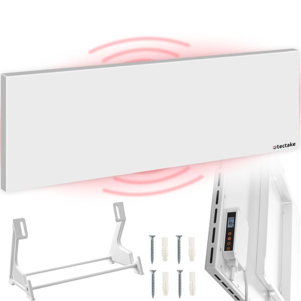 Mach es Dir wohlig warm an kalten Tagen mit der modernen Infrarotheizung mit Kippschutz von tectake. Die sehr flache Konstruktion mit praktischem Haltegriff lässt sich im Handumdrehen schnell und sicher an Wänden und Decken oder auf dem mitgelieferten Ständer befestigen. Durch das integrierte Steuergerät mit Thermostat stehen viele verschiedene Einstellungsoptionen für den Tages- und Wochenrhythmus zur Verfügung. Da keine Luftverwirbelung stattfindet, ist diese Art von Heizsystem sowohl schnell als auch effizient und darüber hinaus ideal für Allergiker geeignet – einfach anzeichnen, bohren, aufhängen und die natürliche Wärme der geräuschlosen Infrarotheizplatte von tectake genießen.
