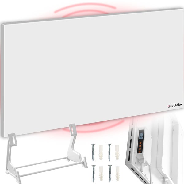 Mach es Dir wohlig warm an kalten Tagen mit der modernen Infrarotheizung mit Kippschutz von tectake. Die sehr flache Konstruktion mit praktischem Haltegriff lässt sich im Handumdrehen schnell und sicher an Wänden und Decken oder auf dem mitgelieferten Ständer befestigen. Durch das integrierte Steuergerät mit Thermostat stehen viele verschiedene Einstellungsoptionen für den Tages- und Wochenrhythmus zur Verfügung. Da keine Luftverwirbelung stattfindet, ist diese Art von Heizsystem sowohl schnell als auch effizient und darüber hinaus ideal für Allergiker geeignet – einfach anzeichnen, bohren, aufhängen und die natürliche Wärme der geräuschlosen Infrarotheizplatte von tectake genießen.
