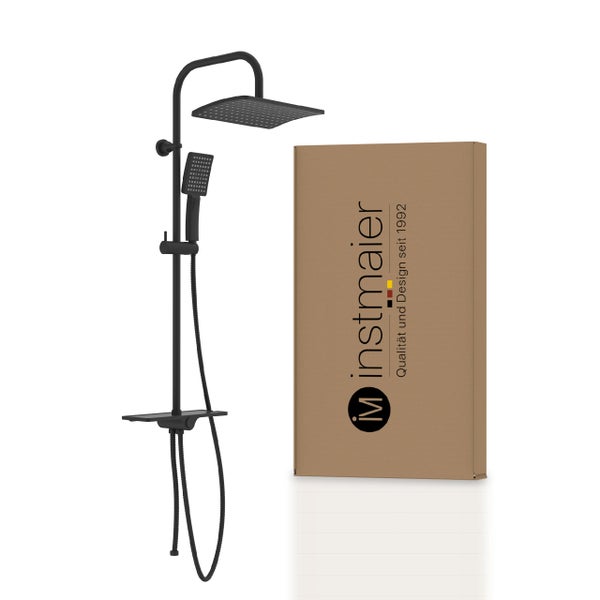 instmaier Duschsystem DS4 | Extra große Regendusche | Regendusche mit großer Ablage | Duschset Schwarz Matt | Handbrause mit 3 Funktionen