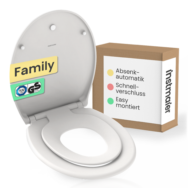 instmaier Helma Family WC Sitz | Toilettendeckel mit Absenkautomatik | Klobrille Weiß | Oval, mit herausnehmbarem Kinder-Einsatz | mit Schnellverschluss | Duroplast