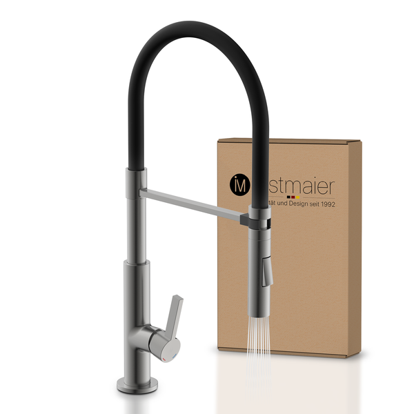instmaier Küchenarmatur K4 | Flexible Geschirrbrause | Wasserhahn Küche mit 2 Funktionen | Spültischarmatur Graphit / Schwarz | 360° schwenkbar | mit Zentralverschraubung