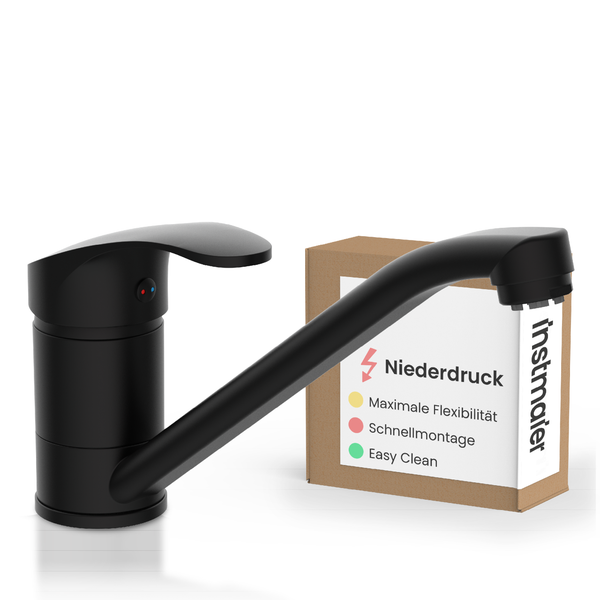instmaier Niederdruck Küchenarmatur Vera | 360° schwenkbar | Wasserhahn Küche | Spültischarmatur Schwarz Matt | mit Zentralverschraubung