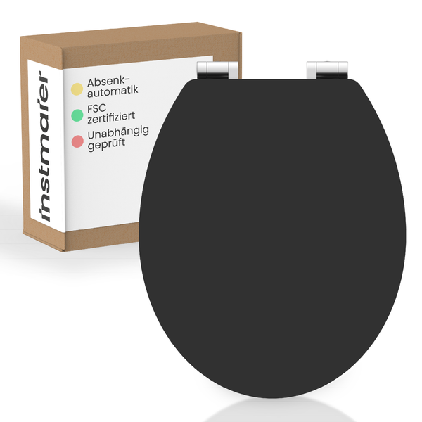 instmaier WC Sitz WC2M | zertifiziertes Holz | Toilettendeckel mit Absenkautomatik | Klobrille Schwarz Matt | Oval | | MDF-Holzkern