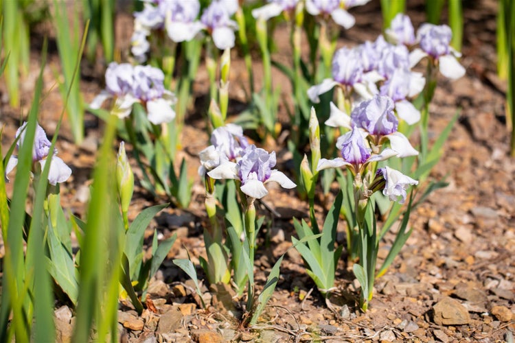 Die Iris x barbata-media ‘Libellula’, bei uns als mittelhohe Bart-Iris bekannt, ist eine elegante Blütenstaude, die mit edlen, welligen Blüten in leuchtendem Blau bis Violett und kontrastierendem gelblich-weißem Bart begeistert. Ihre Blütezeit liegt in der späten Frühlings- bis frühen Sommerperiode, meist von Mai bis Juni, wenn die fächerförmig wachsenden, schwertförmigen, graugrünen Blätter einen attraktiven Rahmen für die aufrechten Blütenstiele bilden. Diese langlebige Zierstaude wächst horstig, bleibt kompakt und eignet sich hervorragend für sonnige Beete, Rabatten und den Vorgarten, wirkt als Solitär ebenso überzeugend wie in Gruppenpflanzung und kann als Kübelpflanze auf Terrasse oder Balkon mit guter Drainage eindrucksvoll in Szene gesetzt werden. Als klassischer Blütenstrauch-Ersatz im Staudenbeet setzt sie vertikale Akzente und harmoniert mit Gräsern, Steppenstauden und Rosen. Ein vollsonniger, warm gelegener Standort mit durchlässigem, eher nährstoffreichem, kalkverträglichem Boden fördert eine üppige Blüte; Staunässe sollte vermieden werden, denn die Rhizome lieben luftige, leicht erwärmte Oberflächen. Für eine anhaltend reiche Blütenpracht empfiehlt sich das flache Setzen der Rhizome, das Entfernen verwelkter Blüten sowie eine Teilung der Horste alle paar Jahre nach der Blüte. ‘Libellula’ ist winterhart, pflegeleicht und verlässlich, verströmt einen dezenten Duft und bringt als Gartenstaude mit charismatischer Wuchsform, klarer Farbwirkung und schnittgeeigneten Blüten zeitlose Eleganz in klassische wie moderne Pflanzkonzepte.