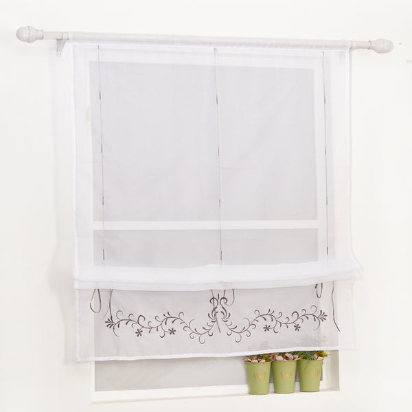 Joyswahl Raffrollo aus Voile mit grauer Rankenstickerei und Tunnelaufhängung HxB 140x80cm