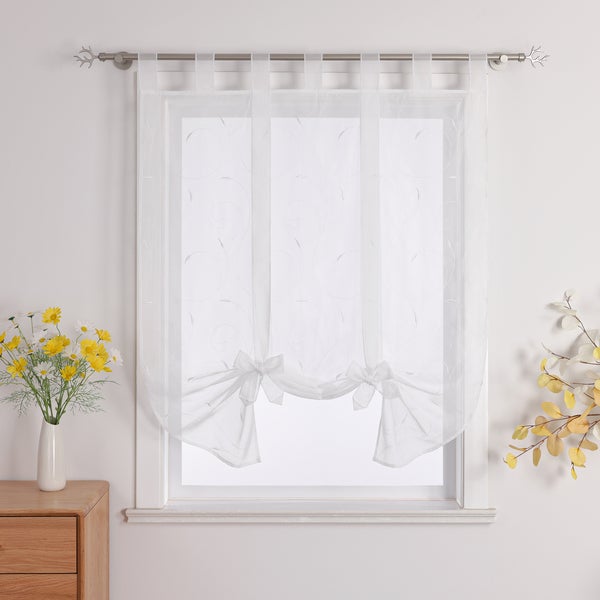 Joyswahl Raffrollo Transparent Voile Weiß Rankenstickerei mit Schleifen und Schlaufen HxB 140x140cm