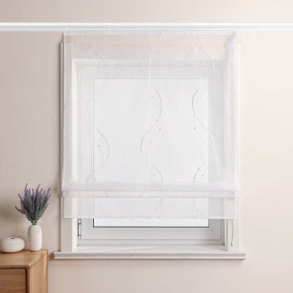 Joyswahl Raffrollo Voile Weiß HxB 140x140cm mit weißer Wellen-Stickerei und Klettband Aufhängung