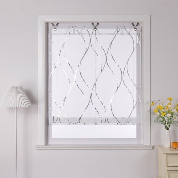 Joyswahl Raffrollo Weiß HxB 130x120cm Voile mit mit silbernem Wellenmuster und V-Haken