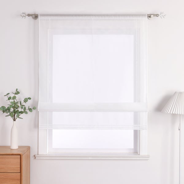 Joyswahl Raffrollo Weiß HxB 155x60cm Voile mit Streifen Muster am unteren Randund Tunnelaufhängung