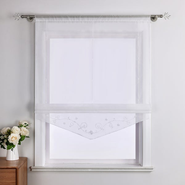 Joyswahl Raffrollo Weiß Transparent Voile mit weißer Blumenstickerei und Tunnel HxB 140x120cm