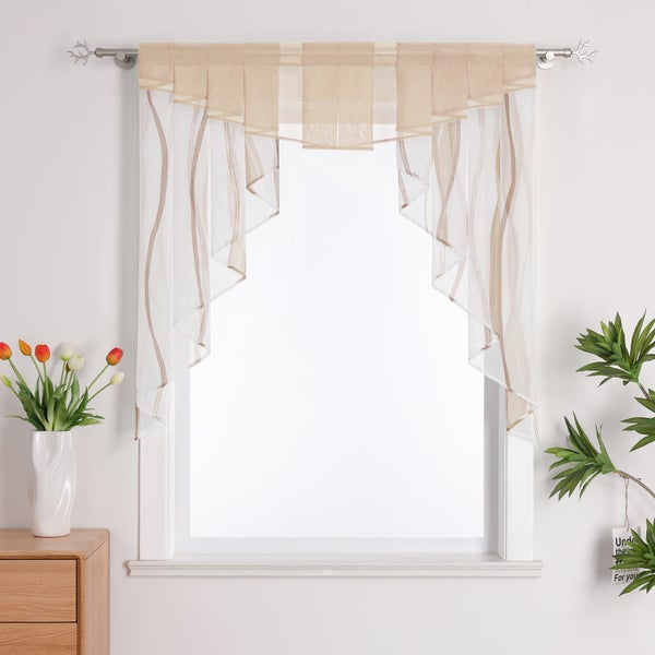 Joyswahl Scheibengardine Sand M-Form Voile HxB 125x120cm mit Wellen Muster und Tunnelaufhängung