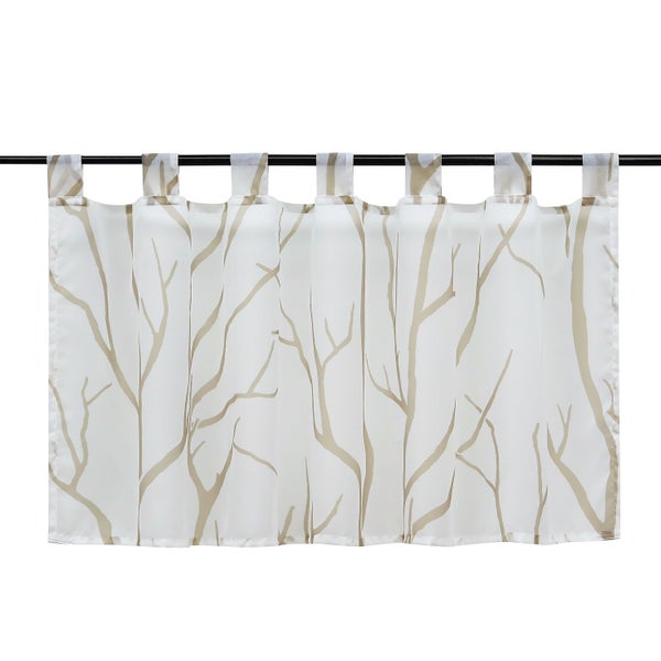 Joyswahl Scheibengardine Transparent Weiß HxB 45x120 cm mit sandfarbenem Zweigmuster und Schlaufen Aufhängung