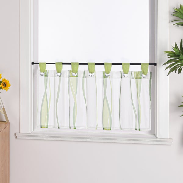 Joyswahl Scheibengardine Voile HxB 30x90cm Grün Küche Bistrogardine mit Streifenmuster und Schlaufen