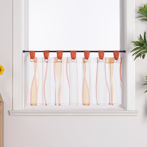 Joyswahl Scheibengardine Voile HxB 45x120cm Orange Küche Bistrogardine mit Streifenmuster und Schlaufen
