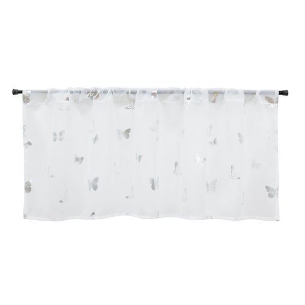 Joyswahl Scheibengardine Weiß Transparent Voile mit silbernem Schmetterlingsmuster und Tunnel HxB 30x90cm