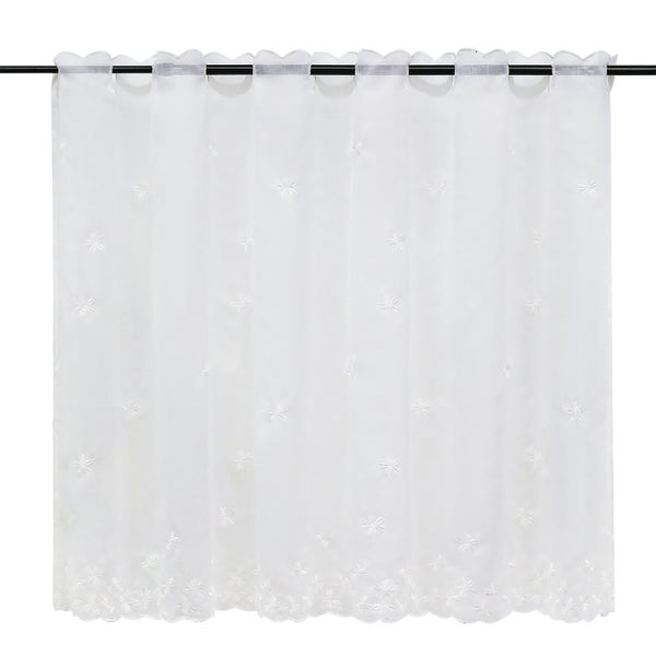 Joyswahl Scheibengardine Weiß Transparent Voile mit weißer Blumenstickerei und Tunnel HxB 75x110cm
