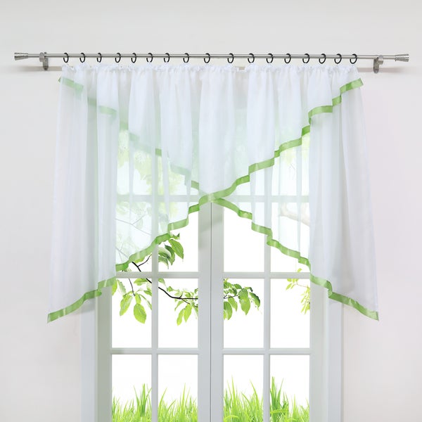 Joyswahl Scheibengardine Weiß Voile Kreuz-M-Form HxB 100x300cm mit Satinband in Grün und Kräuselband