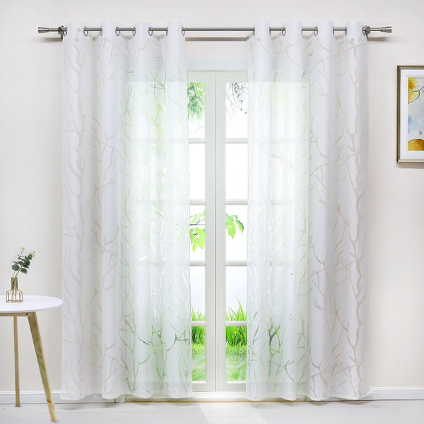 Joyswahl Schiebegardine Weiß Voile HxB 225x140cm mit Zweigmuster und Ösen Aufhängung 1-er Pack