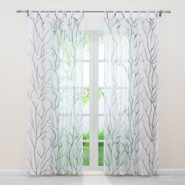 Joyswahl Schiebegardinen Weiß Transparent Voile HxB 245x140cm mit grauem Äste-Muster und Schlaufen 1-er Pack