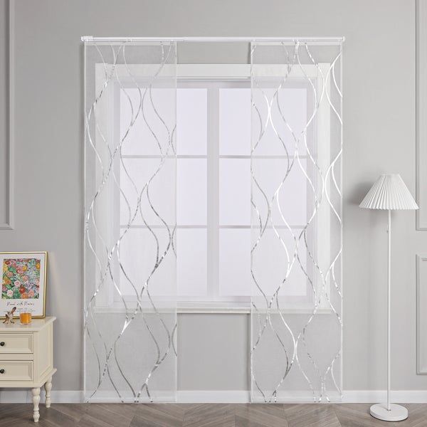 Joyswahl Weiß Flächenvorhang Voile HxB 145x57cm mit silbernem Wellenmuster und Klettband 2er Set