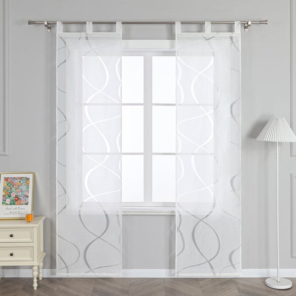 Joyswahl Weiß Flächenvorhang Voile HxB 175x57cm mit Ausbrenner-Kurvenmuster und Schlaufen 2er Set