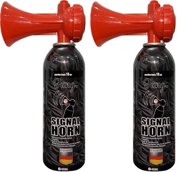 JUNG Druckluftfanfare Air Horn Profi Qualität 2X 400ml, 200 Kurze Signale, Tröte