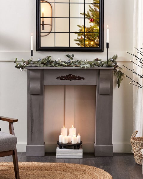 Graue, schmale Deko-Kaminkonsole aus Holz im klassischen Stil. Dieser Deko-Kaminsims besticht durch seine erstklassigen und langlebigen Materialien, wunderbare Verarbeitung sowie seinen Retro Look. Die stilvoll ausgearbeitete Verzierung an der Vorderseite sowie die matten Oberflächen mit sichtbarer Holzmaserung machen dieses Wohnelement zu einem echten Eyecatcher, der in jeder Einrichtung eine gute Figur macht. Nutzen Sie das Mobelstück als Elektrokamin- oder Heizkörperverkleidung oder plazieren Sie Echtwachskerzen auf dem Sims sowie rund um die Kaminattrappe, um eine romantische Atmosphäre im Raum zu schaffen und Ihre Gäste zu verzaubern. Details: Typ Kaminumrandung. Stil: Retro. Farbe: Grau. Material: Holz. Material: Paulownia-Holz. Tischplattenmaterial: Holz. Finish: Matt. Schutzkappen / Filzgleiter: Ja. Abmessungen: Tiefe: 23 cm. Breite: 97 cm. Höhe: 99 cm. Gewicht: 8 kg. Max. Belastung der Oberplatte: 20 kg. .Sie kaufen: 1 x Kaminumrandung. Produktvorteile: Erzeugt Wohlfühlcharakter in jedem Raum, Gemütliche Ausstrahlung, Passt ausgezeichnet zu vielen Einrichtungsstilen, Dekorativ und zugleich funktional, Stabile Verarbeitung. Montage: Nicht montiert.5 - 15 Min. Zusatzinformationen: Bitte beachten Sie, dass dieses Produkt nur zu Dekorationszwecken dient. Von Feuer und direkter Hitzeeinstrahlung fernhalten. Holz ist ein natürliches Material, daher bleibt die feine, natürliche Struktur und die ganz besondere Optik der Holzoberfläche trotz der Farbschicht erhalten. Holz ist ein Naturprodukt. Farb- und Strukturunterschiede, Narben, Falten und sonstige Naturmerkmale sind Echtheitsbeweise und keine zur Reklamation berechtigende Fehler. Pflegeanleitung: Paulownia-Holz: 1.Bitte ausschließlich milde Reinigungsmittel und weiche Tüchern verwenden. Dabei immer in Richtung der Maserung abwischen. 2.Sofort nach der Reinigung abtrocknen, um zu verhindern, dass sich Wasser auf dem Produkt absetzt. 3.Nur bei geölten Holzartikeln befolgen: Sie sollten nach einiger Zeit nachgeölt werden, damit sie lange in einem guten Zustand erhalten bleiben.
