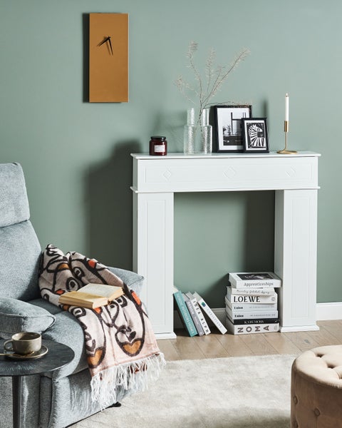 Klassische, schmale Deko-Kaminkonsole mit Strauraum. Ergänzen Sie Ihren Wohnraum mit dieser Kaminattrappe und genießen Sie die gemütliche Atmosphäre eines echten Kamins, aber ganz ohne die damit verbundenen Unannehmlichkeiten. Der Deko-Kamin zeichnet sich mit seinem stilvollen Design, seinen pflegeleichten Oberflächen und integrierten Stauflächen aus. So verschönert er nicht nur Ihren Raum, sondern hält ihn auch geordnet. Dank seiner kompakten Größe lässt er sich einfach an jeder gewünschten Stelle des Hauses platzieren und nutzen. Aufgepeppt mit würzigen Aromen einer Duftkerze oder ätherischer Öle als auch mit knisternden Feuergeräuschen aus einem Lautsprecher, wird die Kaminkonsole sicherlich den Wohlfühlcharakter Ihrer Wohnräume verstärken. Details: Typ Kaminumrandung. Stil: Landhausstil. Farbe: Weiß. Material: Holzwerkstoff. Material: MDF-Platte. Tischplattenmaterial: Holzwerkstoff. Anzahl Einlegeböden: 6. Türöffnungsarten: Standard. Finish: Gefärbt. Schutzkappen / Filzgleiter: Nein. Türanzahl: 3. Regalböden: Ja. Abmessungen: Tiefe: 18 cm. Breite: 107 cm. Höhe: 100 cm. Gewicht: 15 kg. Max. Belastung pro Fach: 5 kg. Max. Belastung der Oberplatte: 5 kg. .Sie kaufen: 1 x Kaminumrandung. Produktvorteile: Gemütliche Ausstrahlung, Erzeugt Wohlfühlcharakter in jedem Raum, Klassisches Design, Stabile Verarbeitung, Praktische Abstellfläche. Montage: Nicht montiert.20 - 40 Min. Zusatzinformationen: Bitte beachten: Aus Sicherheitsgründen muss das Produkt an der Wand montiert werden. Bitte beachten Sie, dass dieses Produkt nur zu Dekorationszwecken dient. Von Feuer und direkter Hitzeeinstrahlung fernhalten. Pflegeanleitung: MDF-Platte: 1.Bitte ausschließlich milde Reinigungsmittel und weiche Tücher verwenden. Feuchte Stellen sofort trocken reiben.