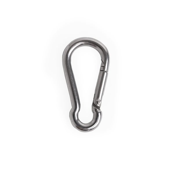 Karabiner für Sonnensegel verzinktem Stahl , ohne Öse, mit Stahlfeder. Erstklassige Qualität, zertifiziert mit einer Bruchlast von 520 kg. Getestet und garantiert. Maße: Durchmesser Ø 6 mm Länge 60mm Höhe 9mm