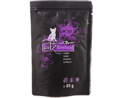Monoprotein-Feinkost für Katzen zur artgerechten Ernährung unserer Samtpfoten. Catz finefood Purrrr No. 111 enthält leckeres und allergenarmes Lamm, die Kochbrühe, Mineralstoffe und Nachtkerzenöl. Damit ist es ein sehr hochwertiges Katzennassfutter, das nicht nur super schmeckt, sondern auch für ernährungssensible oder mit Futtermittelunverträglichkeiten geplagte Katzen bestens geeignet ist. In der Kürze der Zutatenliste liegt die Qualität! Catz finefood Purrrr ist ein Alleinfuttermittel. Ohne Konservierungsstoffe, ohne Geschmacksverstärker, ohne Farbstoffe und ohne Cassia Gum. Gentechnikfrei. Mmmmiau!